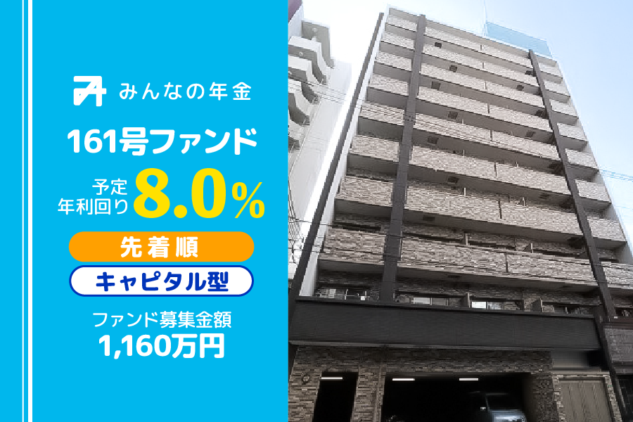 不動産のワンルーム・ファミリー物件を中心に豊富な商品数と徹底したオーナーサポートを提供する当サービス「みんなの年金」は、第161号ファンドを1月21日(水)15時00分より募集開始いたします。